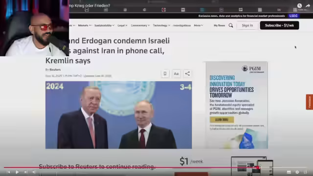 02:00:05Der Streamer analysiert die aktuelle Lage als Teil einer größeren geopolitischen Strategie, bei der Russland durch den Ukraine-Krieg beschäftigt wird, damit Israel und die Iran angreifen können. Er erwähnt die Positionierung von Putin und Erdogan, die sich gegen eine Eskalation aussprechen und als Vermittler fungieren könnten. Trump habe bestätigt, dass der Iran Kontakt zu ihm aufgenommen habe, was als Zeichen für die Suche nach einer diplomatischen Lösung gewertet wird, auch wenn das Zeitfenster schließt.