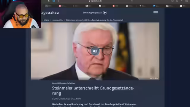 01:48:16Der Stream wechselt das Thema und berichtet über den historischen Bruch der CDU mit ihrer Wählerschaft nach der Verabschiedung des Schuldenpakets. Es wird von einer massiven Austrittswelle und einem Vertrauensverlust von bis zu 44% der CDU-Wähler gesprochen. Die AfD profitiert massiv von dieser Entwicklung und liegt in Umfragen nur noch 4 Prozentpunkte hinter der Union. Friedrich Merz wird strategisch schwache Entscheidungen nachgesagt, die seine Position als designierter Kanzler schwächen.