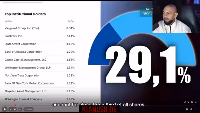 00:53:38PepsiCo wird zu 73,14 % von 3.379 institutionellen Anlegern gehalten, darunter Vanguard Group, BlackRock und State Street Corporation, die zusammen etwa 60 Milliarden Dollar an Aktien besitzen. Ähnliche Muster zeigen sich bei Coca-Cola, wo dieselben Investoren dominieren. Diese institutionellen Anleger kontrollieren nicht nur Lebensmittelkonzerne, sondern sind auch in Technologie-, Agrar- und Pharmabranchen präsent. Die Top-10-Investoren halten oft ein Drittel aller Aktien, wobei Vanguard und BlackRock regelmäßig zu den größten Aktionären zählen. Dieses Netzwerk erstreckt sich global und umfasst auch europäische Unternehmen wie Mercedes-Benz und BMW, bei denen BlackRock und Vanguard gemeinsam 6-12 % der Anteile halten.