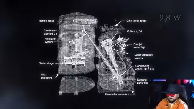 03:40:35Der Streamer reagiert auf ein Veritasium-Video über ASML (15 Mio. Aufrufe). Er ist fasziniert von der Einzigartigkeit der Maschine und der Tatsache, dass sie allein in Holland gebaut wird – mit Patenten, die Nachahmung verhindern. Er kritisiert die deutsche Gesellschaft für technologischen Rückstand und feiert ASMLs 50-jährige Beharrlichkeit. Die Komplexität der EUV-Technologie (Laser hitze von 220.000°C, Präzision der Tropfenbeschuss) übersteigt für ihn fast das menschliche Fassungsvermögen.