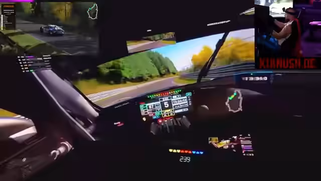 02:23:12Nach dem Rennen wurde auf der Nordschleife ein gemeinsames Training für die Community abgehalten. Es gab technische Herausforderungen wie eine Sound-Latenz und Probleme mit der Fahrzeugsteuerung. Die Fahrer fuhren entspannte Runden, um sich einzufahren und die Strecke zu lernen. Währenddessen wurde im Chat viel diskutiert, welches GT3-Fahrzeug (z.B. Porsche oder BMW) besser geeignet ist. Einige Fahrer zeigten schnelle Runden und kämpften um die Bestzeiten.