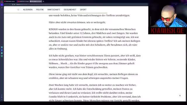 03:29:42Der Streamer leitet einen neuen Themenkomplex ein und fragt die Community nach dem Politiker Christoph Hörstel. Er erwähnt einen kontroversen Bericht des algerischen Portals DZ Algerie über eine mutmaßliche pädophile Orgie, an der der französische Präsident Macron, der Kanzler Merz und weitere Personen beteiligt gewesen sein sollen. Die Anschuldigungen basieren auf einem Zeugenbericht eines.Members der französischen Präsidentengarde und sollen ernste Konsequenzen haben.