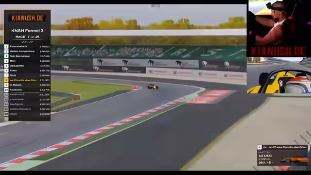 01:20:59Das Rennen nähert sich dem Ende, und die Spannung bleibt hoch. Felix führt ein sauberes Überholmanöver durch, was die Bedeutung des richtigen Umgangs mit blauen Flaggen unterstreicht. Es wird bekannt, dass Erwin eine wichtige Nachricht bezüglich des Rennens nicht mitbekommen hat, was sich auf seine Performance ausgewirkt haben könnte. Finn zeigt eine beeindruckende Leistung, überholt mehrere Fahrer und fährt die schnellste Runde, was ihm einen deutlichen Vorsprung verschafft. Die letzten Runden sind angebrochen, und das Rennen ist noch nicht entschieden. Finn baut seinen Vorsprung weiter aus, während Felix auf dem zweiten Platz liegt. Es kommt zu einer weiteren knappen Situation zwischen zwei Fahrern, die sich hart duellieren. Nach dem Rennen wird eine Analyse der Boxenstopp-Probleme und zukünftiger Events angekündigt. Es wird ein großes Turnier mit drei Rennen auf verschiedenen Strecken und einem Punktesystem geplant, bei dem es Preisgelder und andere Belohnungen zu gewinnen gibt.