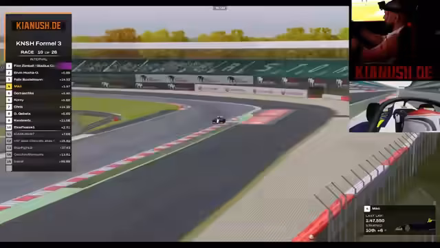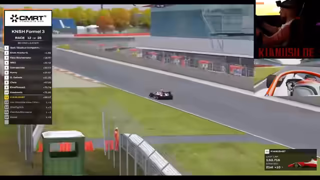 01:14:52Die Boxenstopp-Strategien der Fahrer werden immer wichtiger. Finn hat noch zwei Runden Zeit, bevor er in die Box muss, während Airwins bereits draußen ist und seine Reifen aufwärmt. Felix liegt noch auf dem zweiten Platz und hat ebenfalls noch Zeit für seinen Stopp. Die Spannung steigt, als Felix versucht, seine Führung vor Airwins zu behaupten, der nach seinem Boxenstopp aufholt. Die beiden liefern sich einen intensiven Kampf, bei dem Airwins versucht, Felix von außen zu überholen. Währenddessen wird im Stream über die Beachtung der blauen Flaggen diskutiert, da ein Fahrer, Gabbels, den Tipp gegeben hat, dass Catchy Moments diese ignoriert haben könnte. Kianusch nutzt sein DRS, um Geschwindigkeit aufzunehmen und näher an Kvarrus heranzukommen. Felix fährt schließlich auch in die Box, was die Dynamik des Rennens weiter verändert.