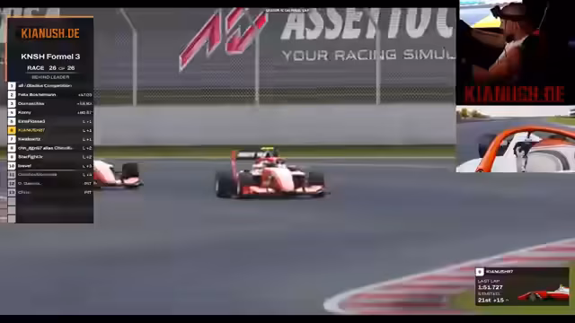 01:38:59Nach dem Rennen blickte der Streamer auf das Wochenende zurück. Er beschrieb es als auf und ab, was zum Rennsport gehöre. Eine veränderte Boxenstrategie habe viel mitgespielt und entscheidend beeinflusst. Trotzdem zeigten zehn starke Fahrer eine gute Leistung, viele Plätze wurden wieder gutgemacht. Das Wochenende wurde als stärker als das vorherige bezeichnet und als Aufstieg gewertet, was die Community begeisterte.
