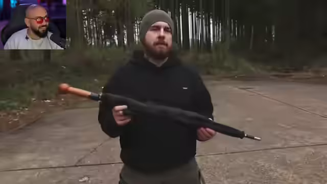 01:54:16Der Streamer testet einen kugelsicheren, Teflon-beschichteten Regenschirm mit Echtholzgriff als Verteidigungswaffe gegen Messerangriffe. Der Fokus liegt auf dem strategischen Einsatz, wobei der Regenschirm als Alltagsgegenstand mit geringerer Hemmschwelle als eine Waffe beworben wird. Im Test wird die Effektivität als Distanz- und Barrieregegenstand geprüft, um Angriffe zu stören und Zeit für die Flucht zu gewinnen. Der Test zeigt, dass der Regenschirm dem Angreifer eine hohe Reichweite bietet und dessen Ablauf stören kann.