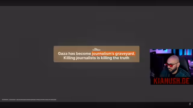 01:04:00Der Streamer berichtet über Angriffe des israelischen Militärs auf Medieneinrichtungen im Gazastreifen. Er erwähnt, dass das israelische Militär mutmaßlich gezielt Journalisten angrift, einschließlich Drohungen und Inhaftierungen. Er zitiert verschiedene Organisationen, die vor der systematischen Einschüchterung und Inhaftierung palästinensischer Journalisten durch israelische Behörden warnen.