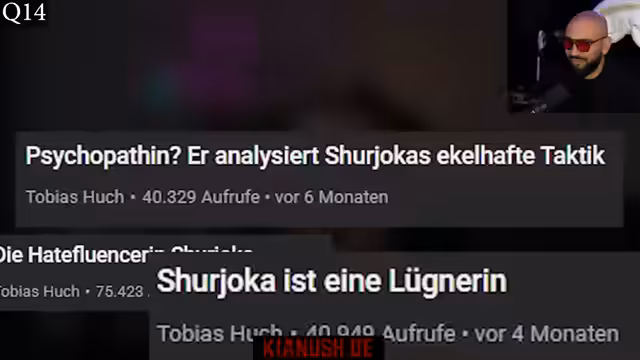 03:53:28Der Streamer geht auf die Anzahl der Videos ein, die er über Tobias Huch erstellt hat, und stellt diese in Relation zu der Gesamtzahl seiner Videos. Er betont, dass lediglich 8 von 360 Videos Tobias Huch behandeln und weist den Vorwurf der Diffamierung zurück. Im Gegenzug kritisiert er, dass Tobias Huch in den letzten zweieinhalb Jahren 88 Videos über Shuyoka veröffentlicht hat, von denen 86 ihren Namen im Titel und 85 ihr Gesicht im Thumbnail zeigen, oft in dramatischer oder beleidigender Weise. Er vergleicht die Frequenz seiner eigenen Videos mit denen von Tobias Huch und stellt fest, dass Tobias Huch in kürzeren Zeiträumen eine höhere Frequenz an Videos zu Shuyoka hochgeladen hat, als er selbst zu Tobias Huch. Der Streamer hebt hervor, dass seine eigenen Videos objektiv und sachlich bleiben, im Gegensatz zu den seiner Meinung nach beleidigenden und verleumderischen Inhalten von Tobias Huch. Er bezeichnet Tobias Huchs Vorgehen als 'Trolling' und 'Clickbait Trolling'.