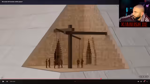 02:53:42Der Streamer diskutiert die Herausforderungen beim Bau der Pyramiden, insbesondere das Ziehen von zwei Tonnen schweren Steinblöcken durch zwölf Leute ohne Rollen. Er spekuliert über die Verwendung von Holzbrettern als Rollen und die Notwendigkeit einer geringen Steigung für Rampen, um Stürze zu vermeiden. Die Theorie einer langen, geraden Rampe wird als unwahrscheinlich angesehen, da sie Millionen Tonnen Baumaterial erfordern und Jahrzehnte dauern würde, was die Bauzeit des Cheops übersteigen würde. Es werden keine Überreste einer solchen Riesenrampe gefunden. Alternativ wird die Idee einer spiralförmigen Rampe um die Pyramide herum vorgestellt, die mit dem Bau mitwachsen und später Teil der Pyramide werden könnte. Diese Theorie würde das Fehlen von Rampenresten erklären, wirft aber neue Fragen bezüglich der Einhaltung des exakten Neigungswinkels von 51,9 Grad auf, da eine spiralförmige Rampe die Sicht auf die Kanten versperren würde. Der französische Ingenieur Henri Audorn und sein Sohn Jean-Pierre Audorn, ein Architekt, entwickeln eine Theorie, die eine äußere Rampe für die ersten 60 Meter der Pyramide und eine innere Rampe für den weiteren Bau vorsieht. Die äußere Rampe soll aus Kalksteinblöcken gebaut worden sein, die später für den oberen Teil der Pyramide verwendet wurden, was das Fehlen von Überresten erklären würde. Die große Galerie der Cheops-Pyramide wird als Teil eines ausgeklügelten Systems mit Gegengewichten und einem Schienensystem für den Transport schwerster Granitbalken interpretiert, wobei Abnutzungsspuren in der Galerie diese Annahme stützen.