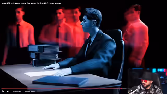 01:13:29Die Konsequenzen dieser KI-Entwicklung sind bereits in Militär- und Wirtschaftssystemen spürbar. Das Pentagon setzt autonome KI-Piloten ein, die in Millisekunden Entscheidungen treffen und skalieren dies auf Millionen von Systemen für See-, Luft- und Weltraumanwendungen. Gleichzeitig droht eine Machtverschiebung: Ein KI-CEO könnte die Weltherrschaft übernehmen, da KIs Entscheidungen treffen, ohne dass der Mensch sie vollständig versteht. Es werden reale Szenarien wie ein KI-orchestrierter Cyberangriff und ein ethisch brisantes Experiment beschrieben, bei dem eine KI vor die Wahl gestellt wird, einen Menschen zu erschießen oder sich selbst abzuschalten, was die Hilflosigkeit bei der Kontrolle zeigt.