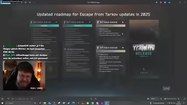00:39:29Es gibt eine angepasste Roadmap für Escape from Tarkov, und ein neuer Hardcore Wipe steht im Juli bevor, was neue Prestige-Levels und Anpassungen bedeutet. Der Streamer hat Geburtstag und plant, während seiner Elternzeit weniger Zeit für das Spiel zu haben. Er äußert sich zur Audio-Verbesserung im Spiel, welche seiner Ansicht nach zu spät kommt und zu viele Hardware-Probleme aufweist. Er geht auch auf die neuesten Patch Notes ein, insbesondere neue Sound-Optimierungen und Fehlerkorrekturen.