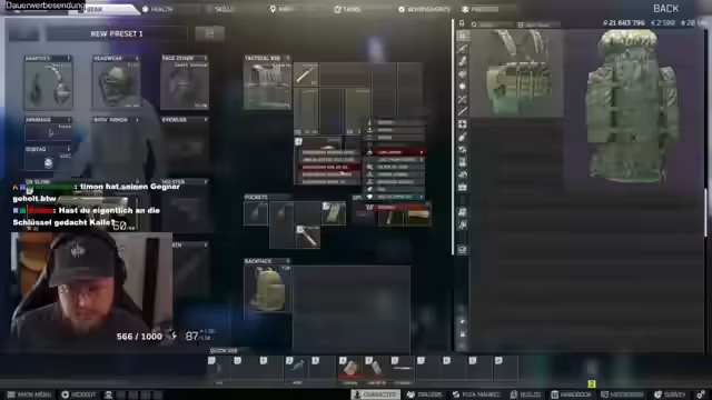 03:47:11Nach längerer Unterhaltung entscheidet sich der Streamer für einen letzten nächtlichen Tarkov-Raid. Der Raid gestaltet sich jedoch schwierig, der Loot ist schlecht und er wird schnell von anderen Spielern eliminiert. Nach diesem enttäuschenden Abschluss kehrt er endgültig zu Diablo 4 zurück. Er spielt weiter, farmt Erfahrung und zeigt, wie er seine Ausrüstung durch einzigartige Gegenstände verbessert.