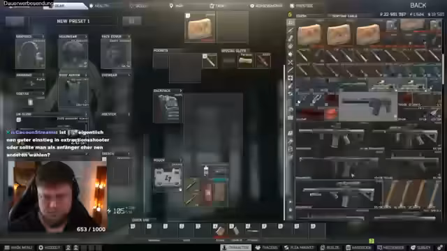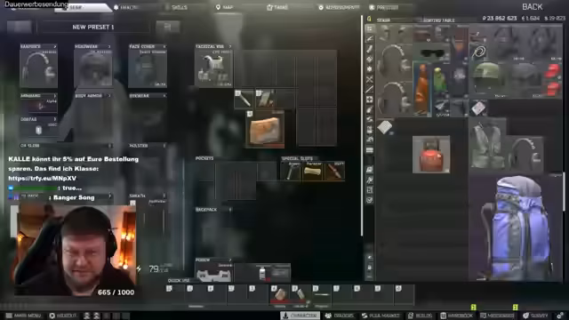 02:22:47Ein Zuschauer fragt nach Ratschlägen bezüglich der Kopfhörer in Escape from Tarkov. Der Streamer erklärt, dass die Wahl des richtigen Kopfhörers stark vom eigenen Setup abhängt, im Wiki aber gut recherchiert werden kann. Er gibt eine klare Empfehlung für die ComTech 6, da diese die weiteste Hörreichweite haben. Gleichzeitig warnt er vor bestimmten Modellen, wie den GSH, da diese den eigenen Schall ecoen und zu Verwirrungen führen können, da man dann eigene Schritte fälschlicherweise für die eines Gegners hält.