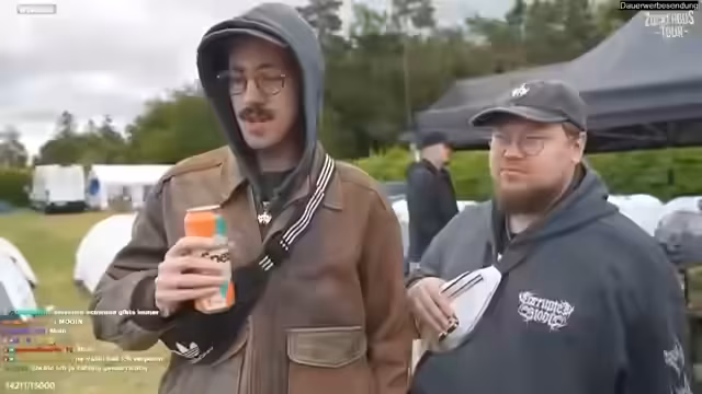 07:42:35Die Streamer interagieren intensiv mit den Festivalbesuchern, insbesondere auf dem Campingplatz. Im Rahmen eines Tauschhandels versuchen sie, verschiedene Gegenstände gegen eine spezielle, von ihnen signierte Bierdose eintauschen. Das Spektrum der angebotenen Tauschgegenstände ist breit und reicht von einem Hut über eine Brille bis hin zu einem Autoreifen. Dabei entwickeln sich lustige und unvorhersehbare Dialoge und Situationen. Der Handel wird zur unterhaltsamen Interaktion, bei der die Streamer den humorvollen Wert ihrer Produkte und die Reaktionen der Festivalgäste erleben.