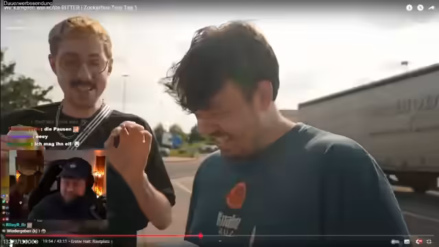 05:43:40Während der Busfahrt gibt es einen intensiven Austausch mit der Community. Zuschauer werden für ihre Spenden und Memes erwähnt. Auch Zukunftspläne werden angedeutet, wie die Möglichkeit einer Eis-Sponsoring-Anfrage durch die so genannte 'Lecki-Community', was an die vorherige Diskussion über das Thema Eierleck anknüpft. Der Streamer bittet die Community um kreative Vorschläge.