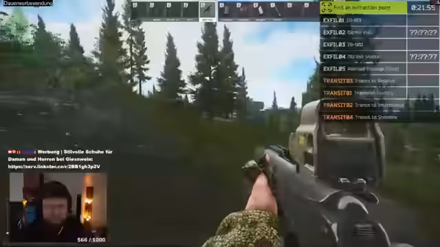 00:56:02Der Streamer spielt eine Runde Escape from Tarkov auf dem Level 1, wo er aus dem Nichts fortgeschrittene Ausrüstung wie eine Fünnerweste und andere High-End-Items findet, was für ihn sehr ungewöhnlich ist. Obwohl er in der Lobby einen anderen Spieler tötet, versucht er, sich zurückzuhalten und nur die für Quests benötigten Items zu looten. Er bereitet sich auf den Exit vor, während er gleichzeitig die Items sortiert, die er für das Versteck benötigt.