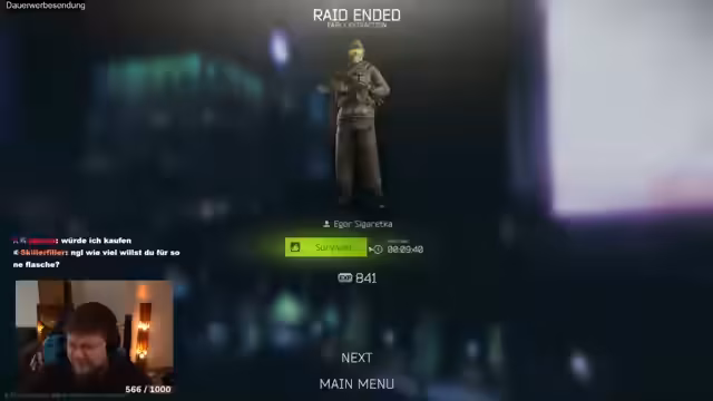 00:39:35Der Streamer reflektiert die Kosten des Spiels Escape from Tarkov und betont, dass es zwar nicht direkt käuflich, aber mit Zeit, Nerven und Lebensjahren zu bezahlen ist. Er klärt die Haltung zum Battle-Pass, dieser bleibe unverändert. Es gibt eine Diskussion über den möglichen Rückgang der Besucherzahlen bei einem Event, was auf weniger verkaufte Plätze hindeuten könnte, obwohl das Event trotzdem ausverkauft gewesen sein könnte.