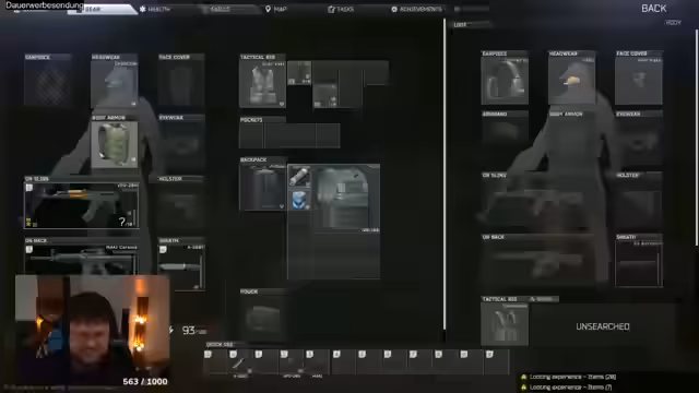 03:58:49Nach einer längeren Raid-Zeit ist der Fokus auf die Organisation des gesammelten Loots im Stash. Der Streamer sortiert alle gefundenen Gegenstände, wobei er sich besonders auf Items wie die HDD konzentriert, die für Quest benötigt werden. Er zeigt sich unzufrieden damit, dass er für den Prestige noch keine Elite-Skills freigeschaltet hat und plant, dies durch gezieltes Farmen zu ändern.