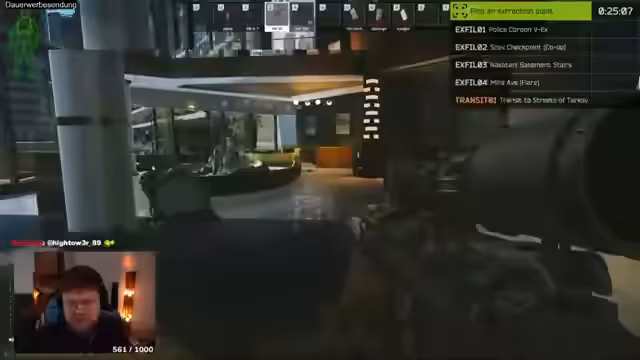 08:42:51Zu Beginn des Streams steht die Durchführung eines Raids im Spiel im Fokus. Der Streamer bewegt sich durch die Map, wobei er auf feindliche Spieler und Scavs stößt. Er hört Schüsse und vermutet, dass sich ein anderer Spieler in der Nähe befindet. Es kommt zu kurzen Feuergefechten, bei denen er versucht, Gegner zu lokalisieren und auszuschalten, während er gleichzeitig versucht, Schlüssel und wertvolle Beute zu finden.