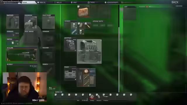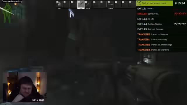 00:24:23Hauptziel des aktuellen Tarkov-Vorhabens ist es, benötigte Office-Kills zu erledigen, da diese für das Freischalten weiterer Bosse unerlässlich sind. Dafür wird die strategisch umkämpfte Factory-Map als Einsatzgebiet gewählt. Es wird beschlossen, mit der stärkstmöglichen Rüstung zu spielen, um maximale Überlebenschancen im Kampf gegen andere Spieler zu haben. Das Vorgehen ist auf maximale Effizienz und Tötungsabsicht ausgelegt, um keine Zeit mit unnötigen Interaktionen zu verschwenden.