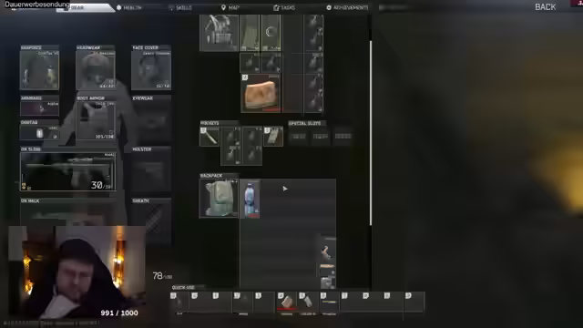 08:57:50Die Streamer führen einen Raid in den Dorms durch, primär um andere Spieler auszuschalten und Beute zu machen. Während des Einsatzes kommt es zu zahlreichen Feuergefechten, bei denen Kalle versehentlich Berg tötet, was beide zu verwirren scheint. Berg wird ebenfalls getötet und muss nach dem Respawn seine Ausrüstung wiederfinden. Kalle sucht im Gebäude nach Loot und erlät dabei schwere Verletzungen, was ihn zwingt, seinen Zustand mit Schmerzmitteln und Heilkits zu stabilisieren. Die Runde gestaltet sich turbulent und erfordert ständiges Anpassen an die sich ändernde Situation.