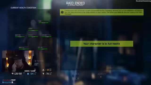 05:08:55Nach einer längeren und ereignisreichen Runde neigt sich das Gameplay dem Ende zu. Der Streamer ist mit den Ergebnissen zufrieden. Er hat eine Vielzahl von Ausrüstungsgegenständen, Waffen und Munition erbeutet. Besonders hervorhebt er den Erhalt seines ersten Granatenträgers und seiner ersten Truppe namens Heinz, was seine Ziele für diese Runde als erreicht bestätigt. Die Runde gilt als geglückt, und die erbeuteten Gegenstände werden im Chat präsentiert, um die Ausbeute zu zeigen. Der Streamer wertet die Ergebnisse positiv und betrachtet die Runde als erfolgreich, auch wenn er denkt, dass er sich etwas geiziger mit der Mitnahme von Ausrüstung gezeigt hätte.
