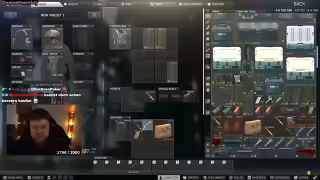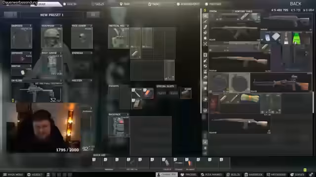 02:41:09Die ersten Minuten des Streams konzentrieren sich auf die Vorbereitungen für einen Raid in Escape from Tarkov. Es geht darum, welche Items wie Essen, Salewas und Stims mitgenommen werden können. Der Streamer checkt die Gegebenheiten und stellt sicher, dass er das Nötige für den Heating Level 1 hat, und erwähnt auch den Besitz von Bitcoins. Es folgt eine Diskussion über die Findbarkeit dieser Items, die bei Jochen Schweizer zu finden seien. Die Stimmung ist technisch orientiert und fokussiert auf das Sammeln der richtigen Ausrüstung für den bevorstehenden Einsatz.