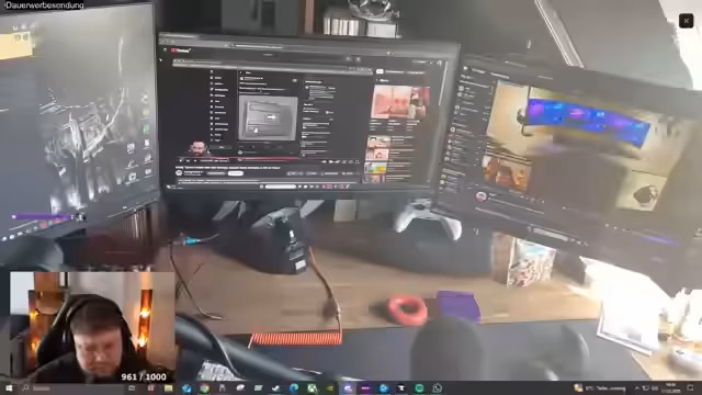 02:47:12Der Streamer zeigt einen Laptop vor dem Monitor, der als ungewöhnlich beschrieben wird, und einen PC, der als Sparbüchse fungiert. Er erwähnt Linux als Betriebssystem und zeigt eine Maus speziell für den Laptop. Das Headset, das nur halb auf den Ohren getragen wird, ermöglicht das Hören von Umgebungsgeräuschen, was er als crazy empfindet. Er bewundert die Beleuchtung, die Monitore und die Boxen-Anordnung. Die Frage nach Musikalität wird gestellt, wobei unklar bleibt, ob der Streamer musikalisch ist oder nur für die Atmosphiele. Die Bezahlung von Games wie Diablo und Prestige-Level werden erwähnt.