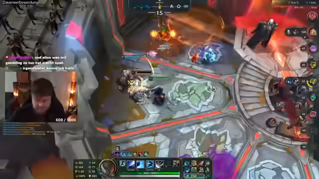 Ein Team absolviert ein Training für einen League of Legends PvP-Modus. Der Fokus liegt auf der strategischen Kombination von Champions, Items und zufälligen Power-ups für den Sieg. Durch das bewusste Sammeln von Ressourcen und den Erwerb starker Augments konnte ein entscheidender Vorteil erzielt und der Sieg errungen werden.