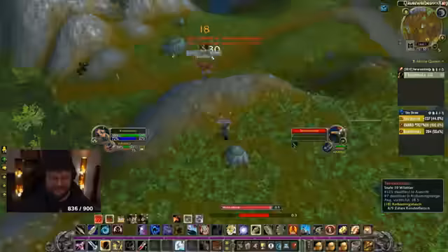 02:53:12Kalle konzentriert sich intensiv auf sein Gameplay. Er erledigt Quests, farmt nach Tunnelrattenohren und erwähnt, dass er ausschließlich durch das Töten von Monstern auf Level 13 kommt, ohne Quests anzunehmen. Er wird von einem anderen Spieler gestört, der seine Monster tötet, und überlegt, den Layer zu wechseln, um Konflikte zu vermeiden. Sein Ziel ist es, möglichst schnell weiterzuleveln.