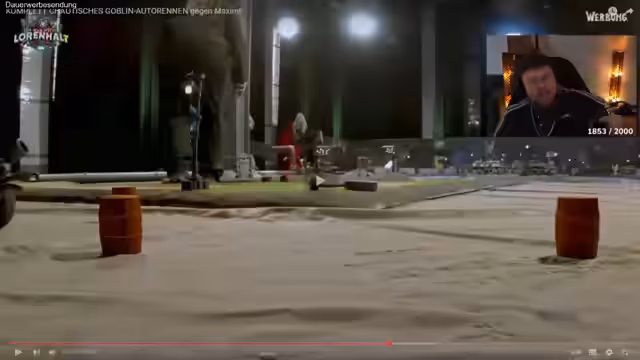 03:15:30Das Rennen beginnt, bei dem jeder Teilnehmer eine Runde auf Zeit bestreiten muss. Die schnellste Runde gewinnt. Der Streamer, der als Erster fährt, hat Schwierigkeiten mit der Steuerung und den Kurven. Anschließend wird gezeigt, wie die anderen Teilnehmer an die Reihe kommen. Die erste Runde ist beendet, aber noch keine endgültige Siegerin bekannt.