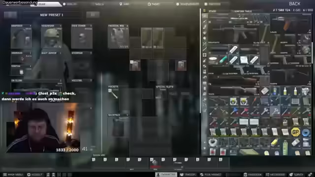 06:40:09Der Streamer berichtet, dass er, aufgrund von Cheating-Problemen auf dem EU-Server, auch den asiatischen Server spielen möchte, um Hyping-Quests zu erledigen. Davor werden jedoch mehrere Boss-Gefechte absolviert. Es werden Bosse wie Tagilla und die Goons getötet, um Quests abzuschließen und seltene Beute zu farmen. Der Streamer bittet den Chat, nicht über einen spezifischen Streamer zu sprechen, da dieser den Server verlassen hat.