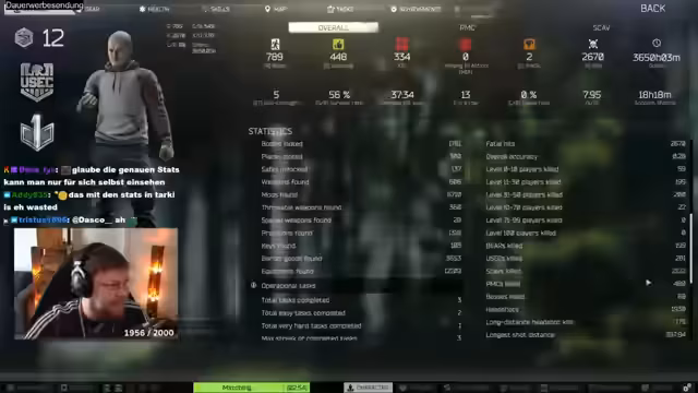 00:14:51Kalle spricht über seine Spielweise in Escape from Tarkov. Er konzentriert sich darauf, bestimmte Spots konsequent abzulaufen, um spezifische Items wie Ledex zu finden. Dies scheint ihm gute Erfolge zu bringen. Er äußert, dass die Stats und Kill-Death-Ratio im Spiel nicht mehr so aussagekräftig sind, da die Werte für Scav-Kills und PMC-Kills zusammengelegt wurden. Dennoch sieht er es als Aufgabe der Community, bei Verdacht auf Cheater diese zu reporten, da dies die einzige Möglichkeit sei, Cheater aus dem Spiel zu entfernen.