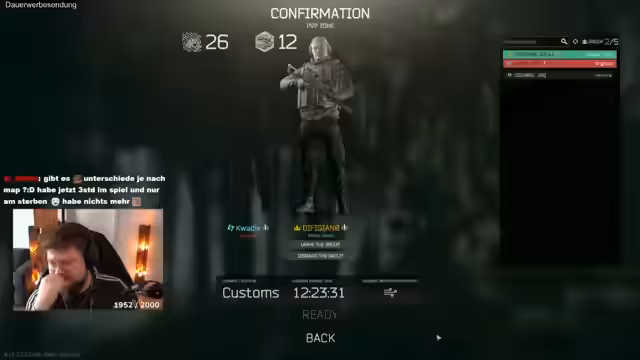 01:35:26Der Stream beginnt mit einem Fokus auf das Setup des Streamers, inklusive eines komischen Mikrofons und eines beschmutzten Popschutzes. Im Spiel wird eine kurze Koop-Runde gestartet, die jedoch sehr kurz endet, da einer der Spieler früh stirbt. Danach wird eine weitere Runde auf der Karte Customs gestartet, bei der die beiden Spieler vorsichtig agieren und versuchen, Loot zu finden und Gegner zu vermeiden.