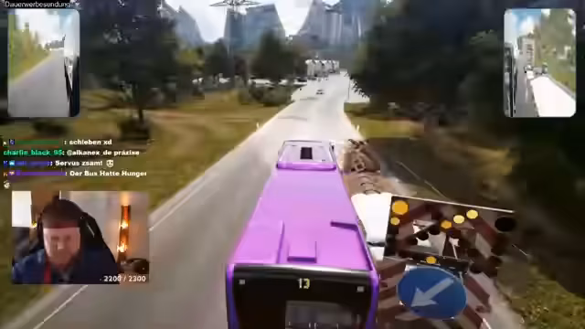 02:37:34Die virtuelle Busfahrt gestaltet sich unerwartet turbulent. Zunächst wird das Ausschalten der Klimaanlage kommentiert, gefolgt von bizarren Äußerungen über Toilettenbenutzung und merkwürdige Vergleiche. Es kommt zu einer ungewollten Rallye abseits der Straße, was die Frage aufwirft, wie der Bus überhaupt vom Weg abkommen konnte. Technische Probleme wie das nicht funktionierende WLAN werden angesprochen, während der Bus in einer misslichen Lage feststeckt. Versuche, das Fahrzeug zu befreien, führen zu weiteren komischen Manövern. Die Suche nach dem WLAN-Passwort gestaltet sich ebenso frustrierend, während gleichzeitig über Signaldefekte auf der Strecke gewitzelt wird. Die Fahrt entwickelt sich zu einem absurden Roadtrip mit skurrilen Kommentaren und unerwarteten Hindernissen, die die Geduld des Fahrers und der Zuschauer auf die Probe stellen. Trotz der Widrigkeiten wird versucht, die Fahrt fortzusetzen, wobei der Fokus immer wieder auf die Suche nach dem WLAN-Passwort gelegt wird.