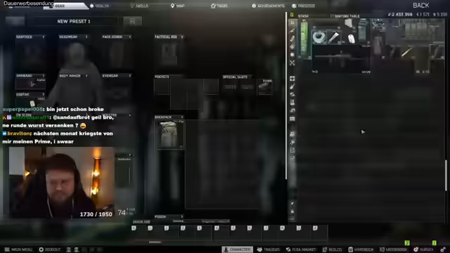 02:52:06Das Organisieren des Stashs wird als sehr aufwendig für Standard-Nutzer beschrieben. Der Streamer empfiehlt, früh mit Punisher-Quests zu beginnen, um den Beta-Pouch zu erhalten und FOMO (Fear of Missing Out) durch die Unheard Edition zu erzeugen. Die Kreditkarte wird als wichtiger Teil des Wirtschaftsspiels gesehen. Demonstration von Geldwäsche-Methoden, bei denen Spieler teure Gegenstände auf dem Flea Market hochsetzen, um große Rubelbeträge zu transferieren, wobei Gebühren für den Käufer anfallen.