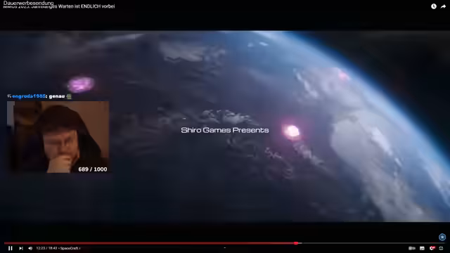 01:13:31Nach negativen Reaktionen auf ein Spielvideo kritisiert der Streamer stark das visuelle Design, das er als Müll und Scheiße bezeichnet. Er zweifelt an dem Stolz der Entwickler, die 13 Jahre für das Projekt benötigten, und bemängelt die gezeigten Inhalte, die keine echten Gameplay-Szenen, sondern nur Third-Person-Kamerafahrten zeigten. Im Kontrast dazu steht Spacecraft, ein MMO mit komplexen Fraktionen, Basenbau und Ressourcenabbau, das dem Streamer deutlich besser gefiel und für das er sich begeistert zeigte.