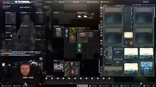 03:03:24Vor Beginn einer weiteren Runde bereitet der Streamer seinen Partner Sterzig auf das bevorstehende Match vor. Er überlässt ihm erneut ein komplettes Set an Ausrüstung, inklusive Weste, Rucksack, Waffe, Munition und medizinischen Verbrauchsgütern. Der Fokus liegt darauf, Sterzig bestmöglich für den Start zu unterstützen, damit er sich voll auf das Gameplay konzentrieren kann. Parallel dazu interagiert der Streamer mit der Community, beantwortet Fragen und bedankt sich für die Unterstützung während der technischen Probleme am Anfang des Streams.