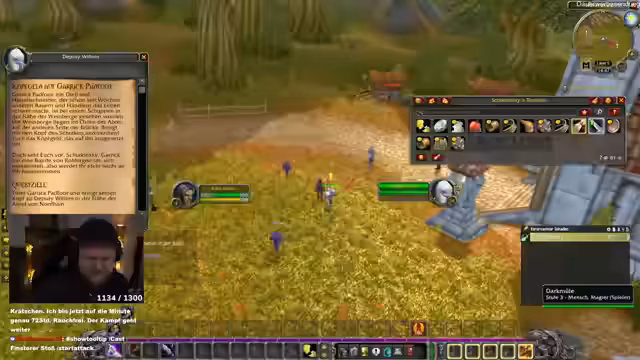 02:55:16Kalle studiert die Schurken-Mechaniken wie Kombopunkte und Fertigkeiten. Er experimentiert mit Makros für Angriffe und Fähigkeiten, unterstützt durch Tipps aus dem Chat. Dabei diskutiert er verschiedene Addon-Optionen wie Heal-Bot und Unitscan, entscheidet sich aber für eine möglichst unmodifizierte Spieloberfläche. Die Erstellung von Makros für Aktionen wie 'Finsterer Stoß' zeigt den Einstieg in die technische Tiefe des Spiels.