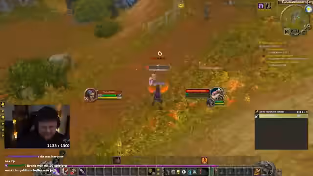 04:12:25Marc-Oliver, Teilnehmer der legendären 3SAT-WoW-Dokumentation 'Spielen, spielen, spielen' (2004), taucht im Voice-Channel auf. Der Streamer ist begeistert von der Nostalgie und erinnert sich an die Doku, in der Marc-Oliver als junges WoW-Original porträtiert wurde. Sie tauschen sich über die Dreharbeiten aus: Das Filmteam begleitet sie wochenlang, nutzte damals unpraktische Headset-Alternativen. Marc-Oliver erwähnt, dass die Doku-Filmaufnahmen zeitintensiv waren und Monate bis zur Ausstrahlung dauerten.
