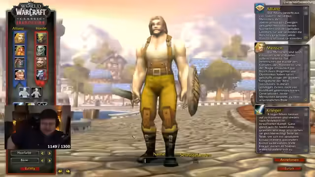 02:41:09Die Klassenwahl wird finalisiert: Kalle hadert zwischen Paladin (als Heiler) und Schurke (für Unsichtbarkeit), verwirft aber Magier als zu langweilig. Als Komfort-Klasse favorisiert er Krieger, trotz schwierigem Leveln und Gear-Abhängigkeit. Er plant, die gewählte Klasse am nächsten Tag zu grinden. Spielmechanische Anpassungen werden besprochen, z.B. Auto-Hit-Einstellungen und Swing-Timer. Es gibt eine Abstimmung im Chat, wobei Mensch-Rassen obligatorisch sind. Kalle reflektiert positive Kritik an seiner Aussprache und zeigt Lernbereitschaft.