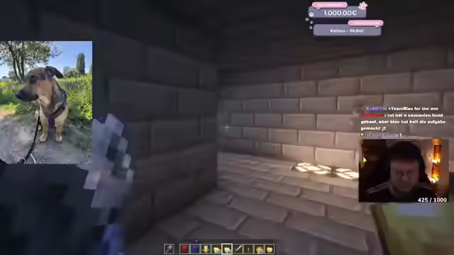 In einer Minecraft Bau-Challenge traten Team Blau und Rot gegeneinander an, um in 20 Minuten ein Hundeportrait zu erstellen. Team Blau gewann mit einem fast identischen Nachbau. Der Fokus richtet sich auf das morgige Minecraft-Event um 18 Uhr, eine Klopperei in einer speziellen Arena. Alle Infos im Discord.