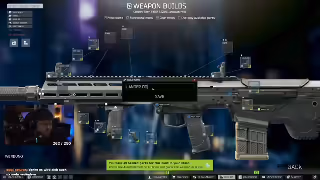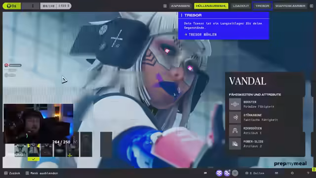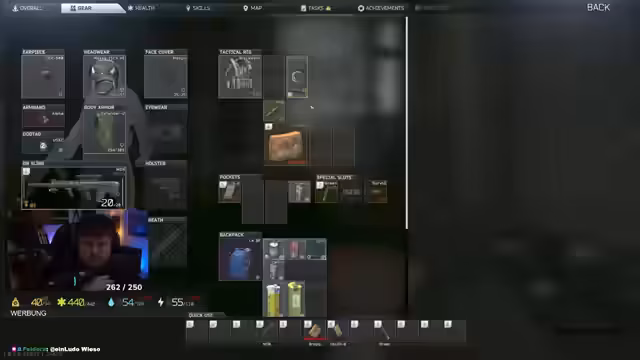 00:19:38Nach den technischen Diskussionen wird wieder in Escape from Tarkov gespielt. Der Streamer und sein Partner wollen auf Interchange, um Quests abzuschließen und Gegenstände wie Chemicals und Grafikkarten zu besorgen. Dabei wird die Quest mit dem Killer-Helm erwähnt, der plötzlich ein V-Design hat. Die beiden planen, die Beute zu koordinieren. Der Streamer berichtet zudem über sein aktuelles Prestige-Level und die daraus resultierenden Quests, wie die beschissene 'Endenkacke'.