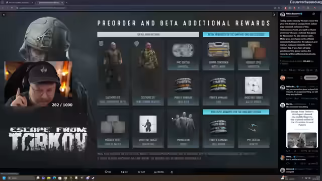 00:22:58Es wird klargestellt, dass Escape from Tarkov nicht zwingend über Steam gekauft werden muss, um es weiterhin spielen zu können; der Battlestate Games Launcher bleibt eine Option. Der Kauf auf Steam bietet jedoch die Möglichkeit, das Spiel in der Steam-Bibliothek zu haben, Stunden und Achievements zu sammeln sowie In-Game-Kleidung zu erhalten. Der Streamer und die Community diskutieren die zusätzlichen Belohnungen für verschiedene Spielversionen. Insbesondere wird die 'Unheard Edition' thematisiert, die die frühere 'Edge of Darkness' (EOD) Version abgelöst hat. Die EOD-Version versprach ursprünglich alle zukünftigen DLCs kostenlos, ein Versprechen, das mit der Einführung der teureren Unheard Edition gebrochen wurde, was zu großem Ärger in der Community führte. Es gab Pay-to-Win-Elemente, die teilweise noch im Spiel vorhanden sind. Der Streamer erwartet, dass EOD-Nutzer unter den Ankündigungs-Posts spezielle Belohnungen fordern werden.