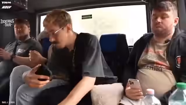 00:01:19Die Fahrt gestaltet sich laut und aufregend. Der Streamer beschreibt, wie der Bus wie ein Schiff wackelt und man sich festhalten muss. Die Innentemperatur steigt rapide an, während er über seine persönlichen Gegenstände für das Festival spricht, wie sein Electric-Cowboy-Badehandtuch und sein wichtiges Kuschelkissen. Eingehend diskutiert er im Chat über das Thema Hygiene auf dem Festivalgelände, insbesondere die Frage, ob man dort für drei Tage duscht oder nicht. Persönliche Vorlieben wie regelmäßiges Gesichtswaschen werden geteilt und er kritisiert übertriebenen Parfümgebrauch als künstlich.