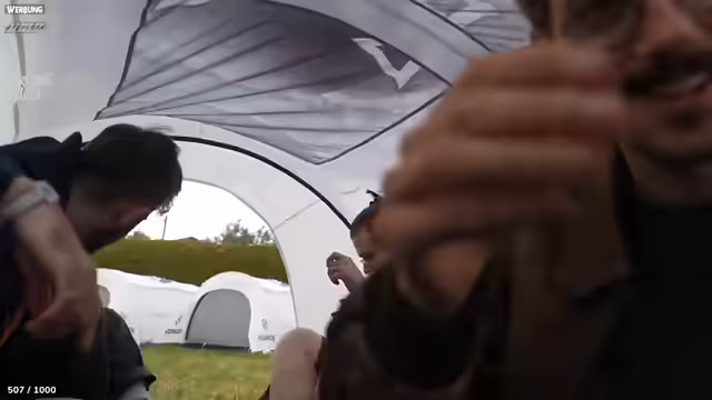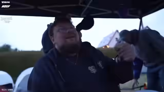 05:29:21Nachdem die Ankunft auf dem Festivalgelände geklärt ist, konzentriert sich die Crew auf die Auswahl und den Aufbau der Zelte. Jeder darf zunächst sein eigenes Zelt frei wählen, was zu einer hitzigen Diskussion über die optimalen Plätze führt. Die Gruppe entscheidet sich, das Zeltlager in zwei Bereiche aufzuteilen: ein 'Schnarcher-Lager' für die lautsten Schnarcher wie Johannes und Kevin und ein 'Nicht-Schnarcher-Lager' für den Rest. Es wird zudem eine 'No-Fuck-Regel' für das gemeinsame Zeltgebiet etabliert. Die Suche nach dem besten Standort, der sowohl nah an den sanitären Anlagen als auch geschützt vor dem Lärm des Pavillons liegt, führt zu weiteren Diskussionen über die Vor- und Nachteile der verschiedenen Plätze.