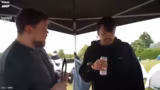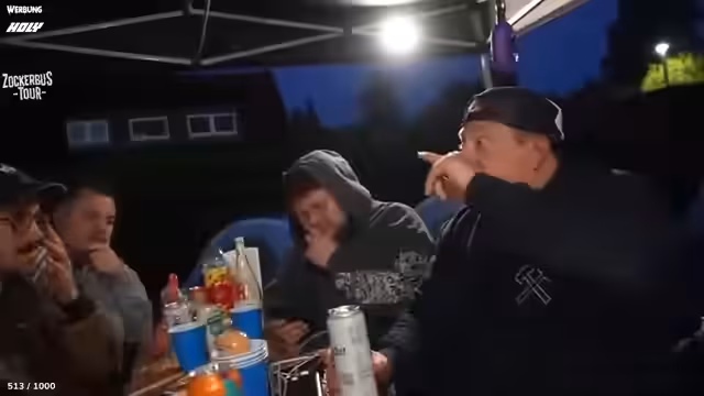 00:03:12Eine längere, unvorhergesehene Pause am Rastplatz ist notwendig, da Johannes Gorzel, der Co-CEO, mit dem Zug verspätet anreist. Diese Wartezeit führt zu leichter Frustration im Team. Währenddesses sorgt eine spontane, laute Feiergruppe am Rastplatz für Aufsehen. Der Streamer und sein Team sprechen einige der Anwesenden an, um herauszufinden, welche Erfahrungen diese mit Festivals haben und was sie für Rock am Ring mitnehmen. Das Gespräch ist geprägt von der lockeren Festivalatmosphäre, aber auch von einer unangenehmen Situation, als der Streamer Kritik für das Aufnehmen von Bildern erhält und das Gespräch abrupt beendet wird.