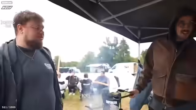 07:57:59Nachdem der Grill endlich angezündet ist, beginnt das eigentliche Grillfest. Der Streamer, ausgestattet mit einer Schürze, betont seine Rolle als 'Grillmeister'. Die Gruppen verteilen sich, um das Grillen zu organisieren. Trotz des anfänglichen Regens wird das Grillen als 'geiler Vibe' beschrieben, der das Wetter übertönt. Die Würste und Burger werden zubereitet, wobei der Streamer auch auf die richtige Zubereitung von Vegetarischem eingeht. Es werden Anekdoten von früheren Grillen und Events geteilt, was die gute Stimmung unterstreicht.