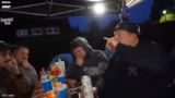 03:21:29Zunächst wird eine Spielrunde in Betracht gezogen, jedoch wird davon abgesehen, da die Teilnehmer die Chance haben müssen, etwas mitzubringen. Kurz darauf folgt ein fesselndes Wettspiel namens "What Are The Odds", bei dem zwei Teilnehmer eine Zahl zwischen 1 und 100 gleichzeitig nennen müssen. Stimmen die Zahlen, muss derjenige eine Aufgabe erfüllen. Die Spannung steigt, als die Zahlen knapp verfehlt werden, was die Anspannung unter den Teilnehmern deutlich spürbar macht.