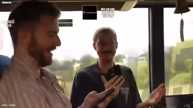 04:05:24Nach der erfolgreichen Interaktion wird die Ausschiffung vom Bus organisiert. Die Teilnehmer werden angewiesen, ihre Sachen mitzunehmen, da der Bus später zum Zeltplatz gebracht wird. Es wird die Möglichkeit geboten, sich für Mittagessen im Crew-Catering zu versorgen oder direkt zum Zeltplatz zu laufen. Gleichzeitig wird ein Gruppenfoto angekündigt. Diese Ankündigung leitet den Übergang vom Bus zum eigentlichen Festivalgelände ein.